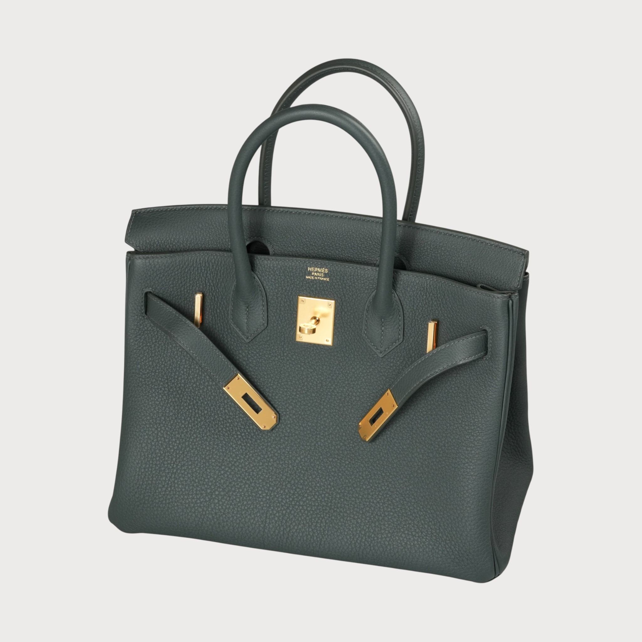 Some pieces do not need an introduction. They are recognized immediately, understood instinctively, and chosen with confidence. This Hermès Birkin 30 in Vert Mangrove with gold hardware is one of them. Vert Mangrove is a color of depth and composure. Rich and balanced, it carries presence without demanding attention. It feels calm, assured, and unmistakably refined. The gold hardware adds warmth and light, softening the look while keeping it strong and sophisticated. The Birkin 30 is the perfect size for women who move through a full life, from early meetings to evenings that linger longer than expected. It holds exactly what you need without ever feeling cluttered, and its weight is a reminder of the quality and craftsmanship inside. Real women leave it open sometimes, casually draping it over their arm or chair, because it fits the way life actually happens. Owning a Birkin is as much about presence as it is about practicality and every moment with it feels quietly special. This bag is brand new and unworn, offered as a full set from 2025, including the original Hermès receipt issued within the European Union. It is untouched, authentic, and ready to be part of the life it was chosen for. This is a bag for women who understand that luxury is intentional and discreet. It is chosen with certainty, appreciated for its presence, and carried with confidence
