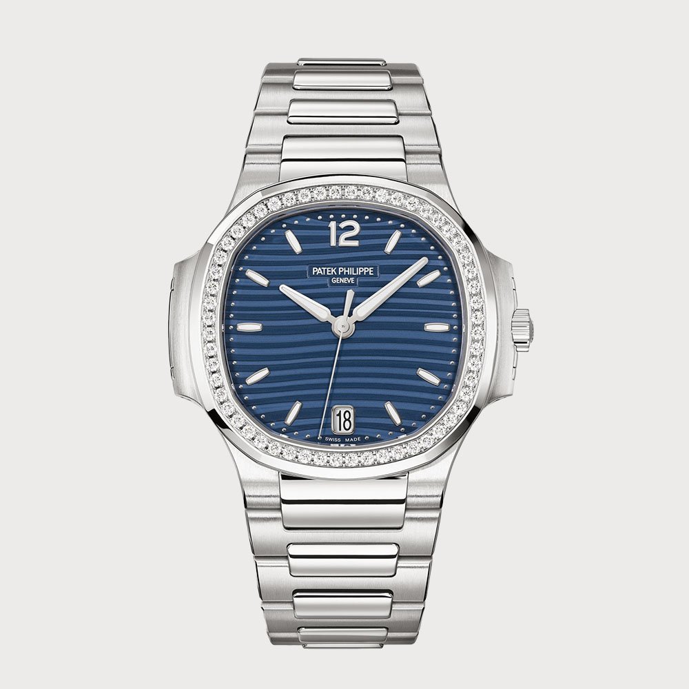 The Patek Philippe Nautilus 7118/1200A-001 is a refined timepiece that seamlessly blends elegance with functionality. Designed for women, this watch features a 35.2 mm stainless steel case adorned with a diamond-set bezel, exuding sophistication. The blue opaline dial, complemented by gold applied hour markers and numerals with luminescent coating, ensures optimal readability. Powered by the self-winding Caliber 26-330 S C movement, it offers a power reserve of approximately 35 to 45 hours. The watch is water-resistant up to 60 meters, making it both a stylish and practical accessory.