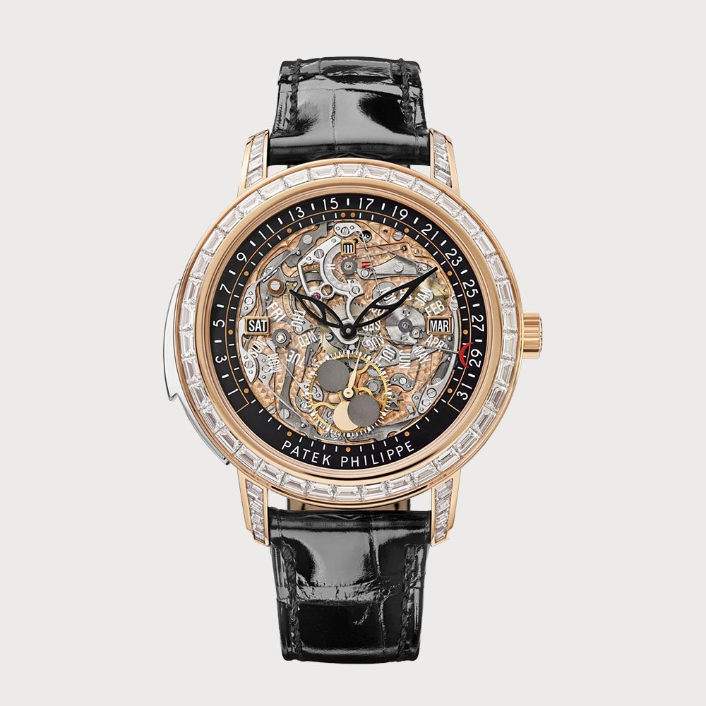 Minute Repeater Perpetual Calendar Skeleton In Rose Gold With Baguette Diamond Set